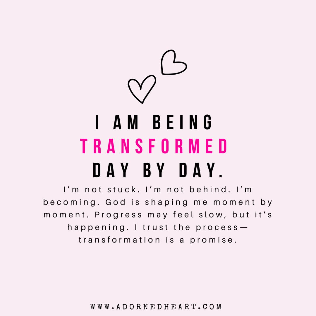 I’m not stuck. I’m not behind. I’m becoming. God is shaping me moment by moment. Progress may feel slow, but it’s happening. I trust the process—transformation is a promise.